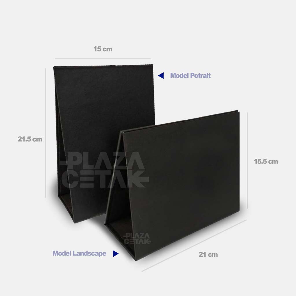 - Bahan : Karton Board No. 40, Lapis Kain Linen Hitam (Luar), Kertas Linen Hitam (Dalam)